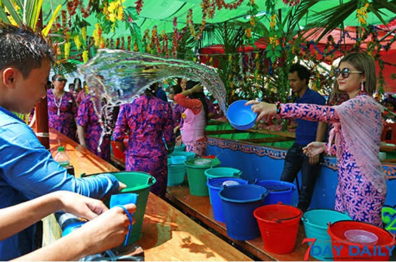 ミャンマー全国行われ、家から外に出たら水かけられます。